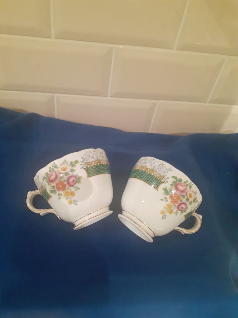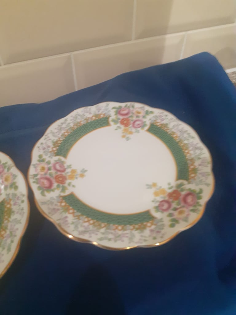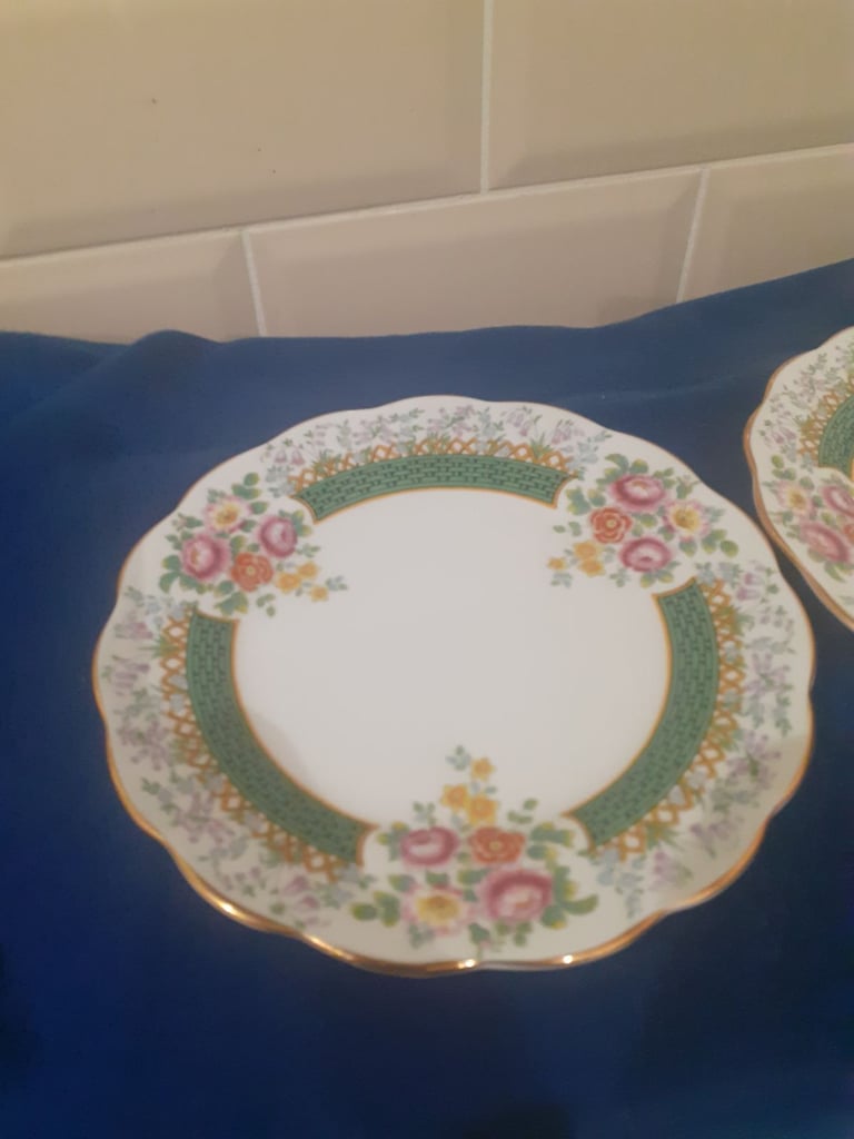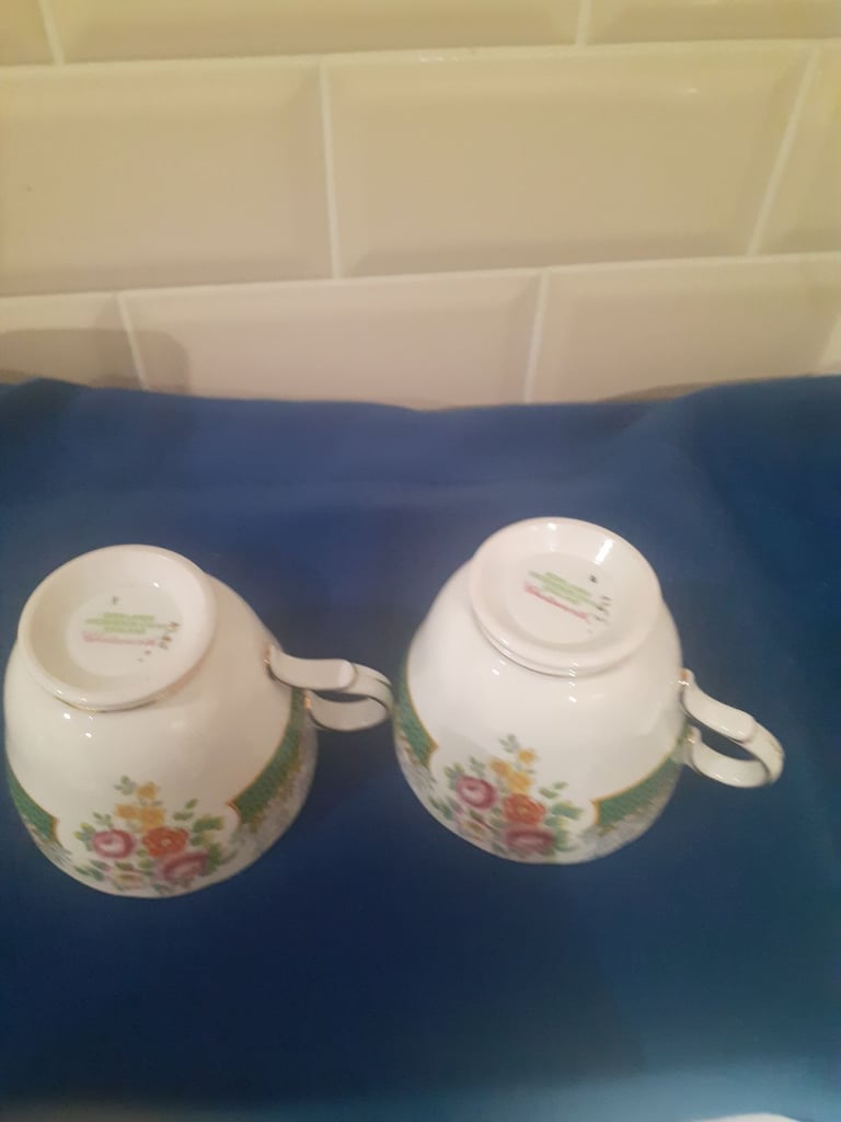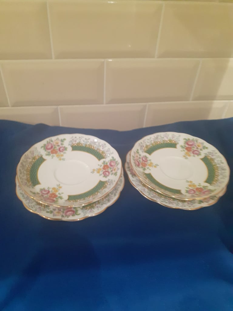 Vintage Copeland Grosvenor China Chatsworth 2 Cups, 2 Saucers, 2 Side Plates, Unused, Hallmark