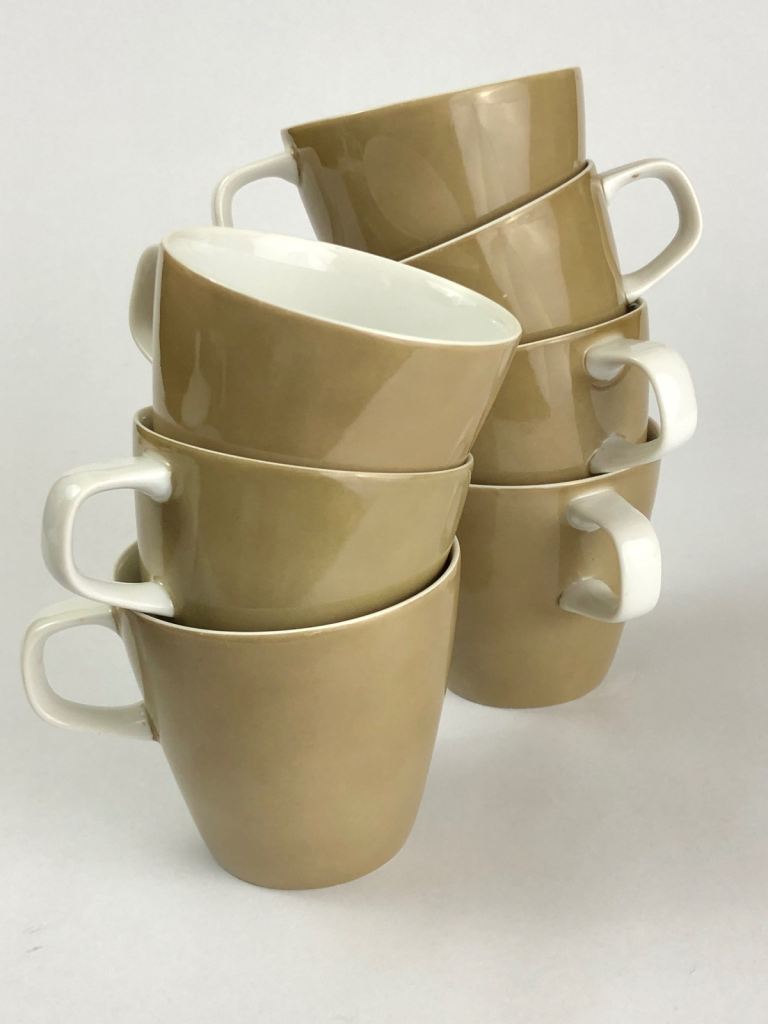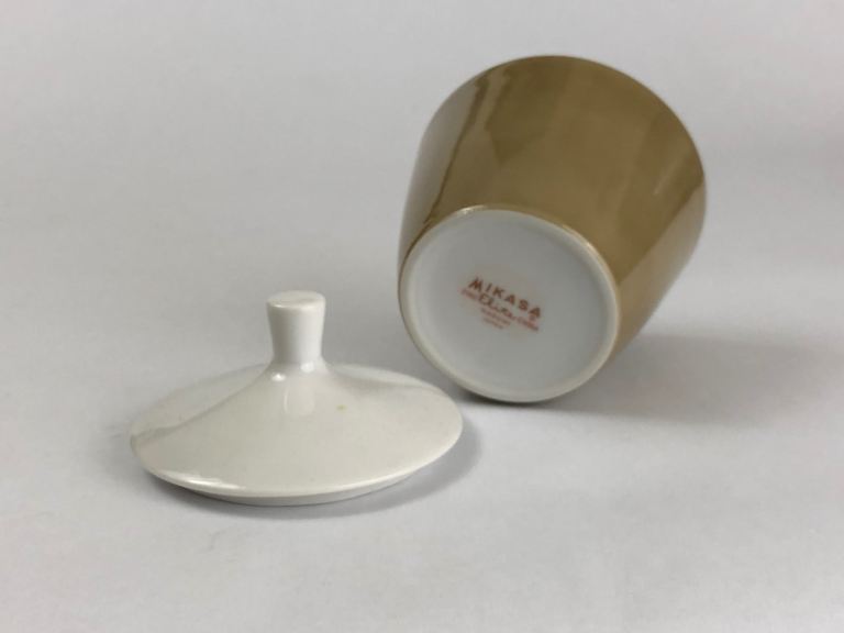 Stylish Mikasa coffee set in a warm beige tone with white interior.