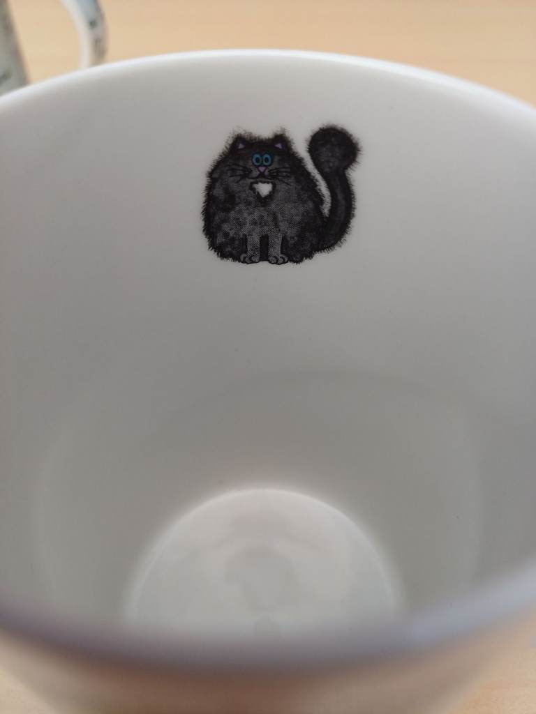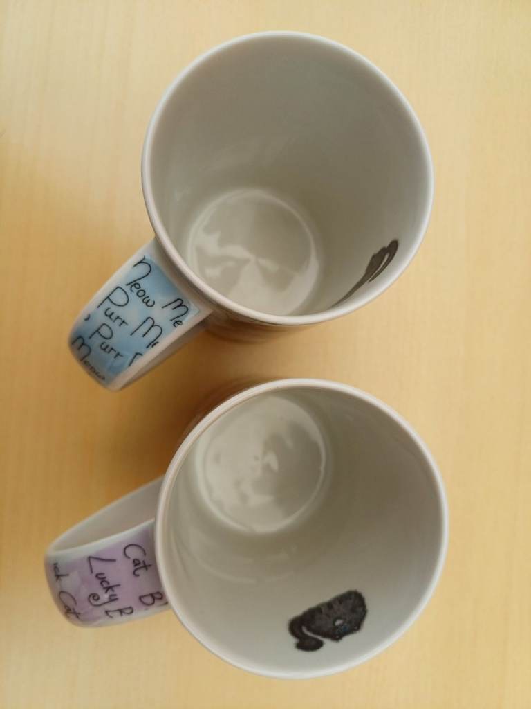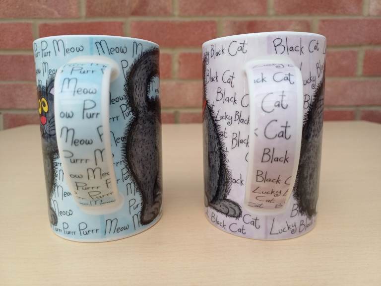 Vintage Pair of Dunoon Stoneware Lucky Cats Mugs (Made In Scotland) Designed by Jane Brookshaw