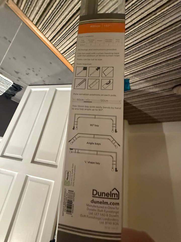 Brand new unused 19mm bay curtain pole in antique brass metal, selling as no longer needed in renovation.