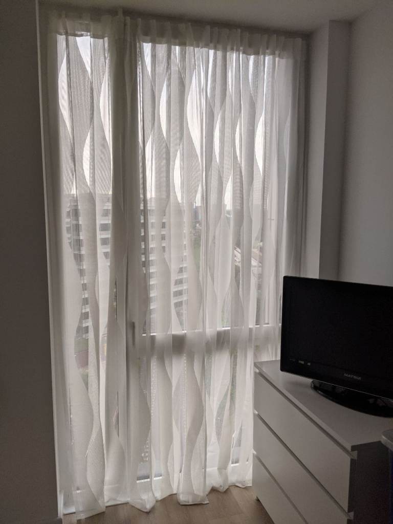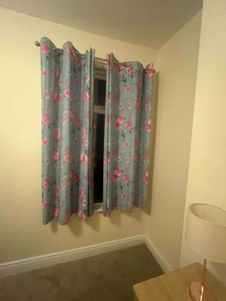 2 pairs of John Lewis Cotton Slub lined pencil pleat curtains in light slate grey. Temporary solution so were only hung for 18 months. Width states that of one curtain when laid flat. A pair will cover a track or pole measuring 182-228cm. Retail at £200/pair. Will also sell as 2 pairs separately at £25/pair.
