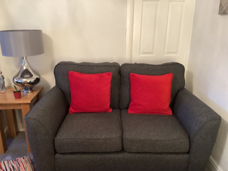 Two pairs of full length fully lined red chenille luxury curtains. Suitable for room with two windows. Both pairs have eyelet heading. Reason for sale is, made to measure so non returnable and wrong colour for room. Cost over £500 and will take £40 for both pairs. Size 66 wide and 82 drop in inches. Both exceptional condition.