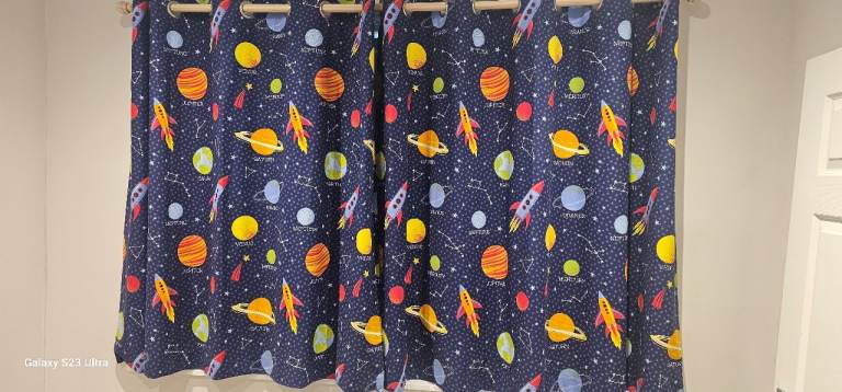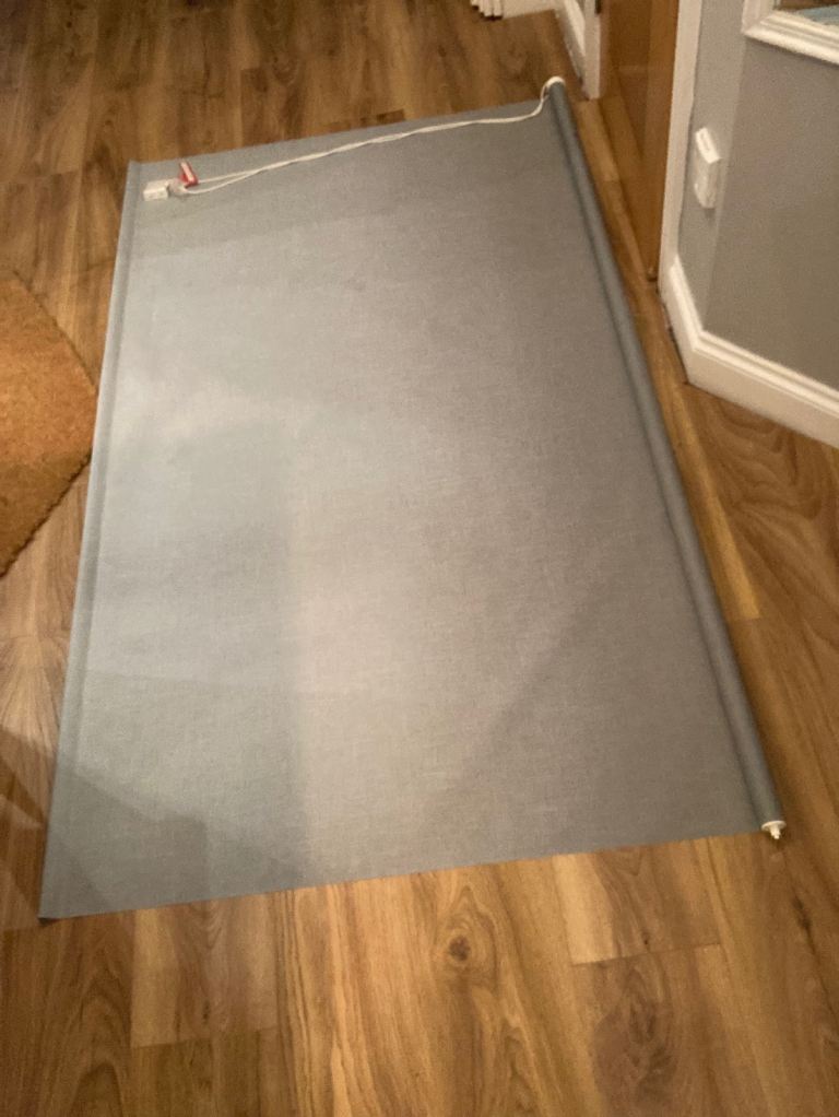Grey, work well. Also comes with little wall things to hold the bottom of the chain.