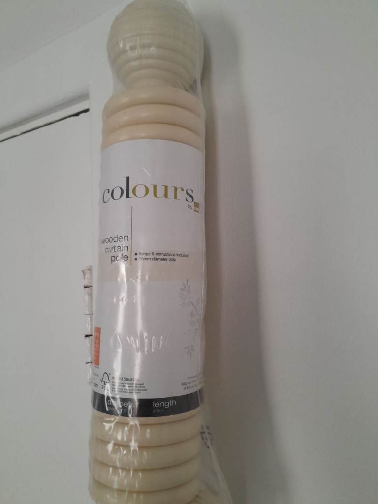 B&Q Wooden Curtain Pole 2m Cream