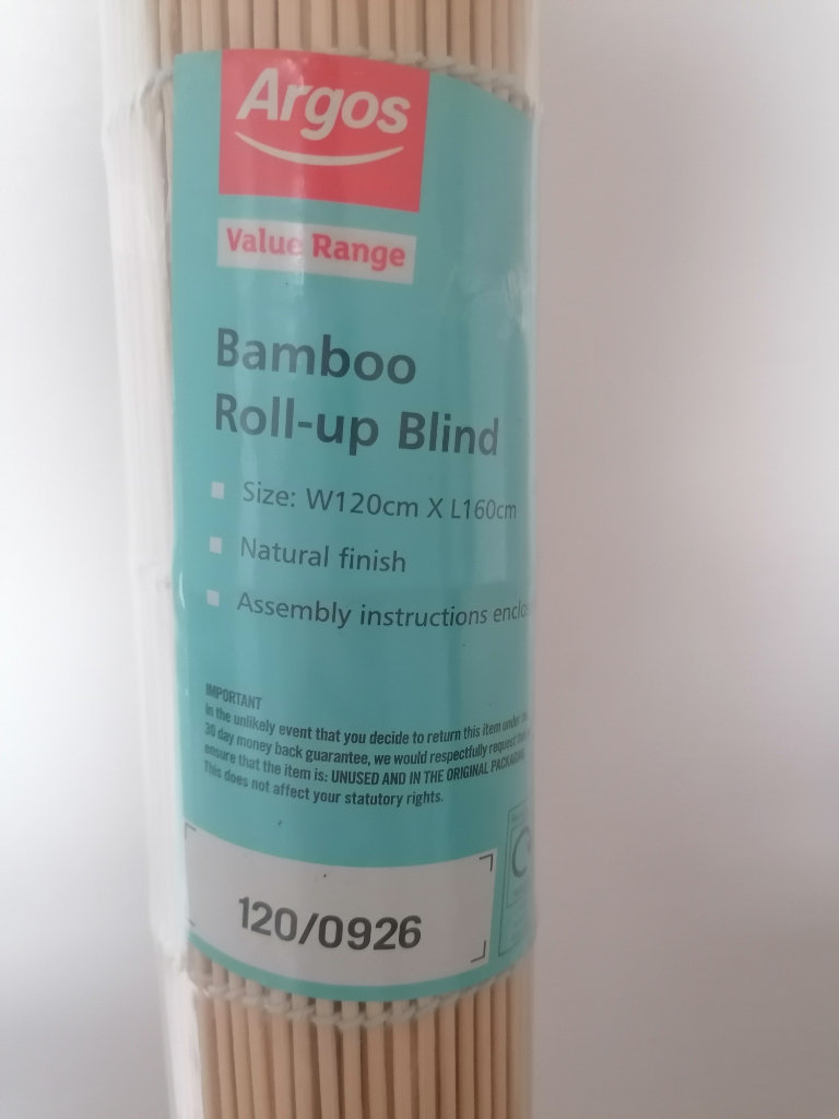 Bamboo Roll Up Blind. Natural Finish. Size W120cm X L160cm. New, see pictures. There are x2 available. Collection from Brixton SW2 2TP & cash only sale. VIEW PROFILE for everything else on sale. Thanks for looking!