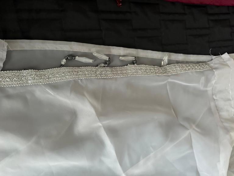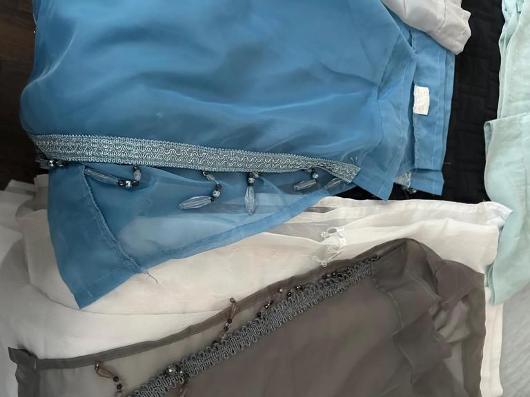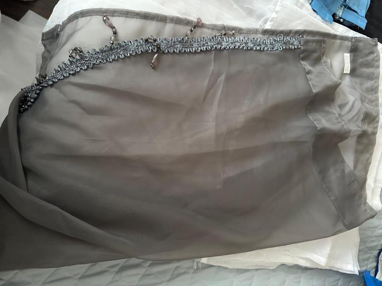 Beaded Swags for sale 5 dark grey, 1 light grey and 2 blue, all plain voile. £10 for all or £2 each. Rod tops not tab top.