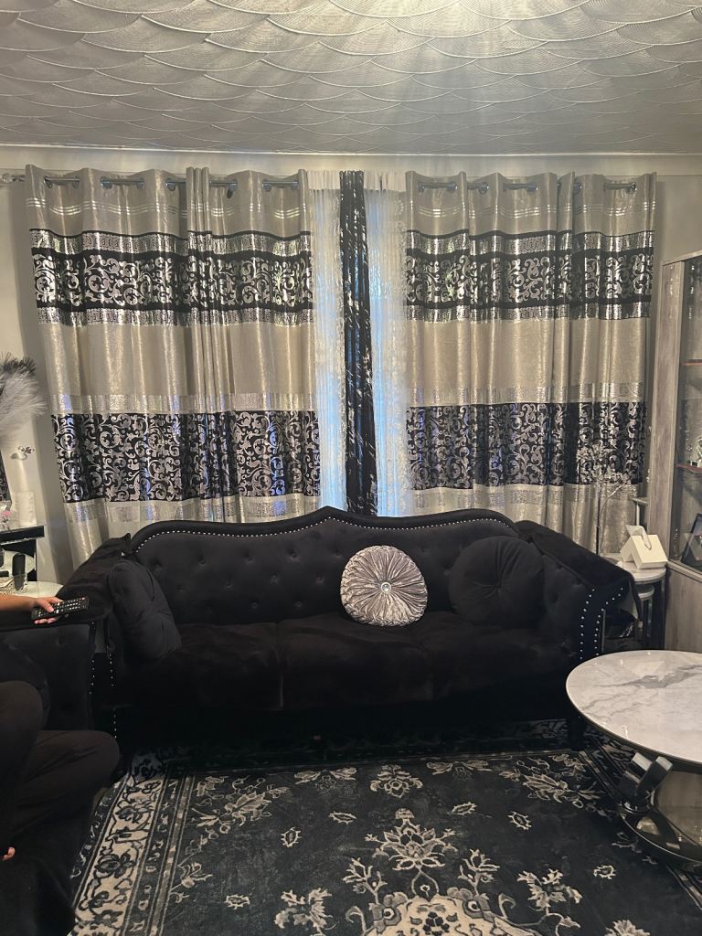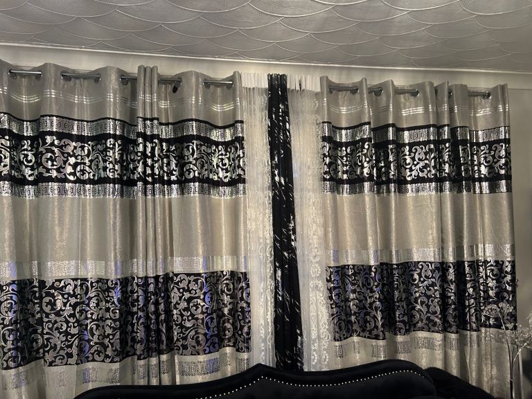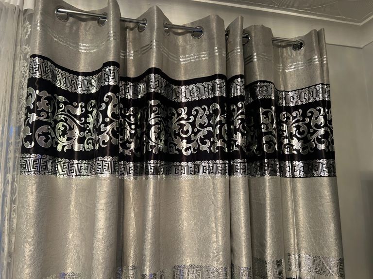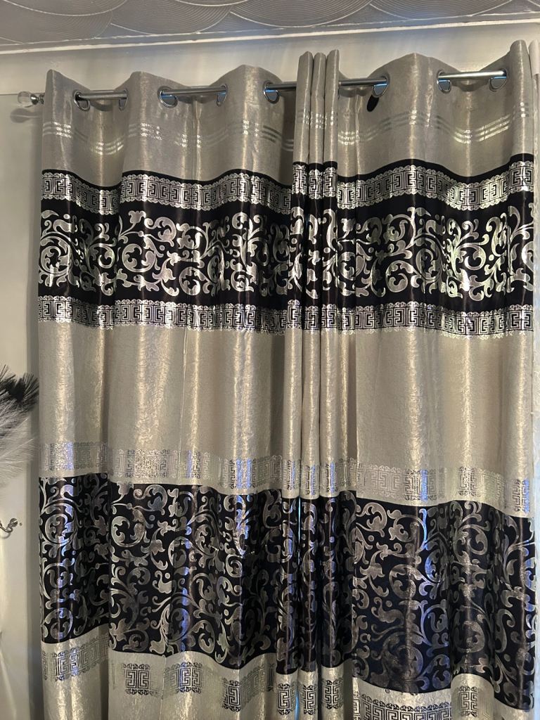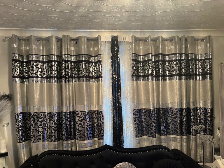 Brand new gorgeous stylish pair of black and silver curtains size 135/260 I got 3 pairs if anyone interested quick sale bargain price