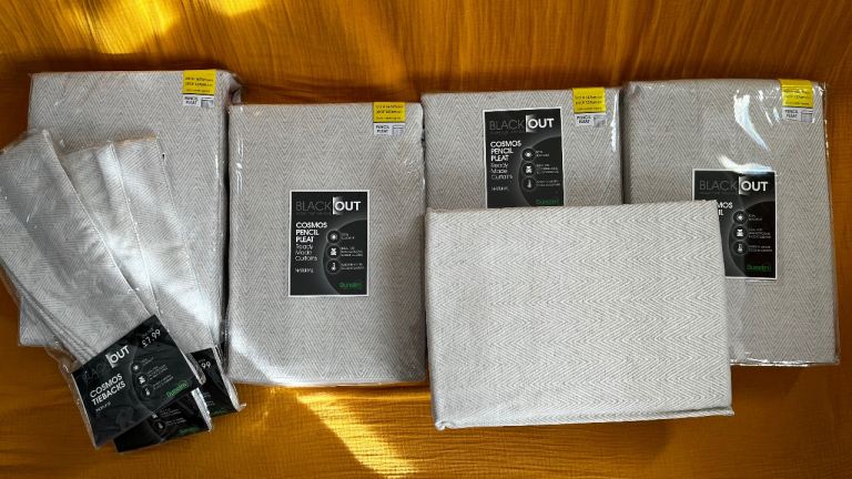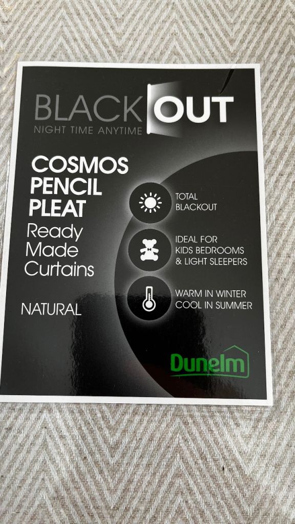 Brand New Set Of Curtains+ties Cosmos Pencil Pleat From Dunelm Black Out Natural
