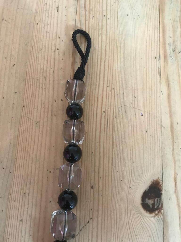 NEW Temptation beaded tiebacks in black. £5 per pair. Glass crystal effect beaded rope style curtain tiebacks. Large bead is 19mm, embrace is 84cm. Can post at £3 or collection following social distancing.