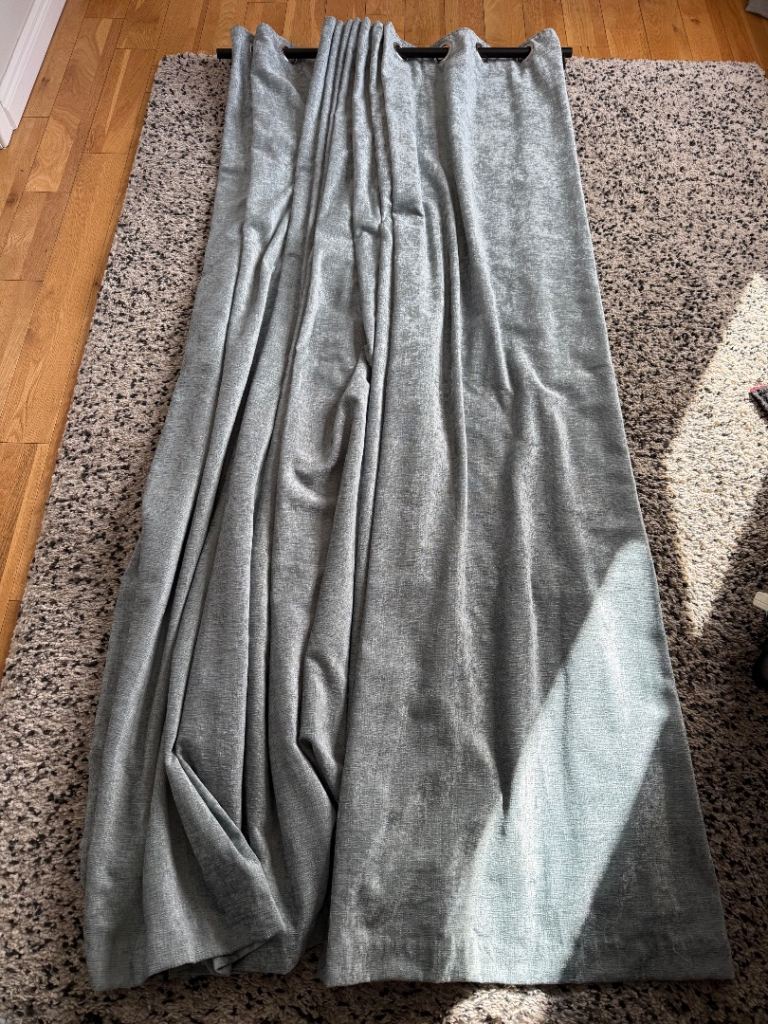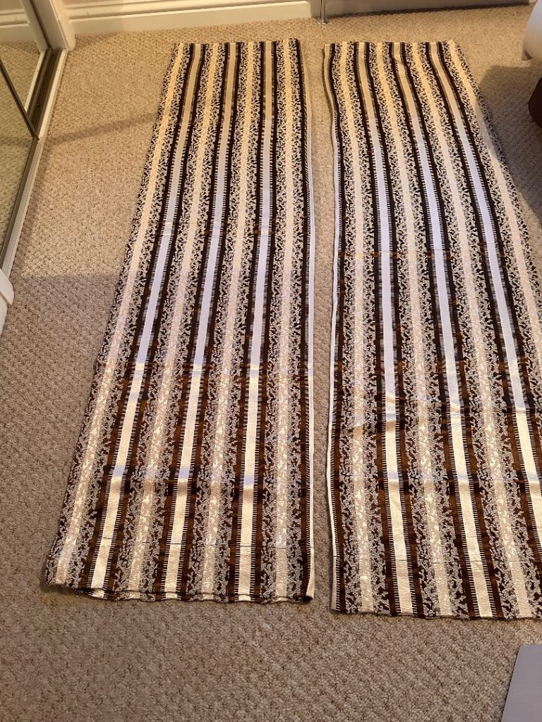 One pair Good quality heavy curtains - 6’ 5” (196 cms long) x 3’ 8” wide (104 cms wide) - no longer fit my windows unfortunately
