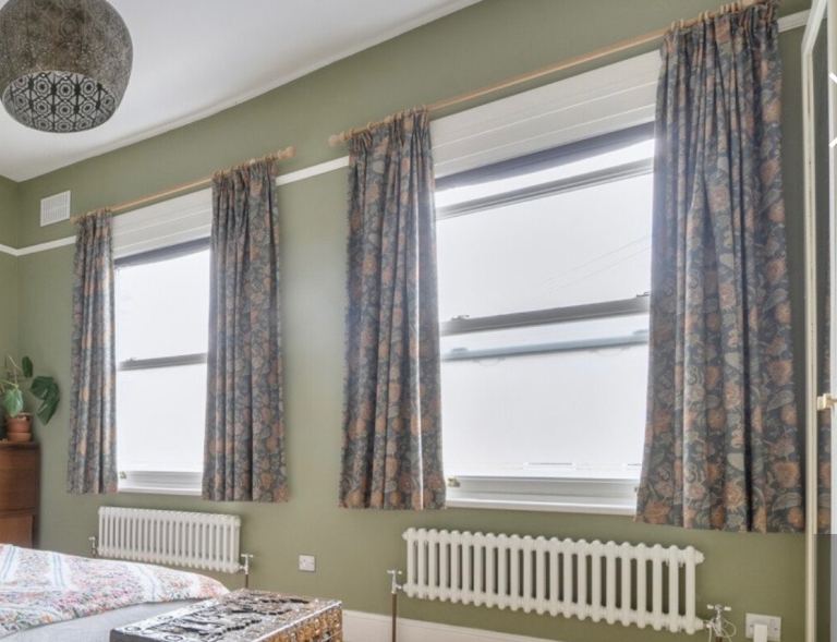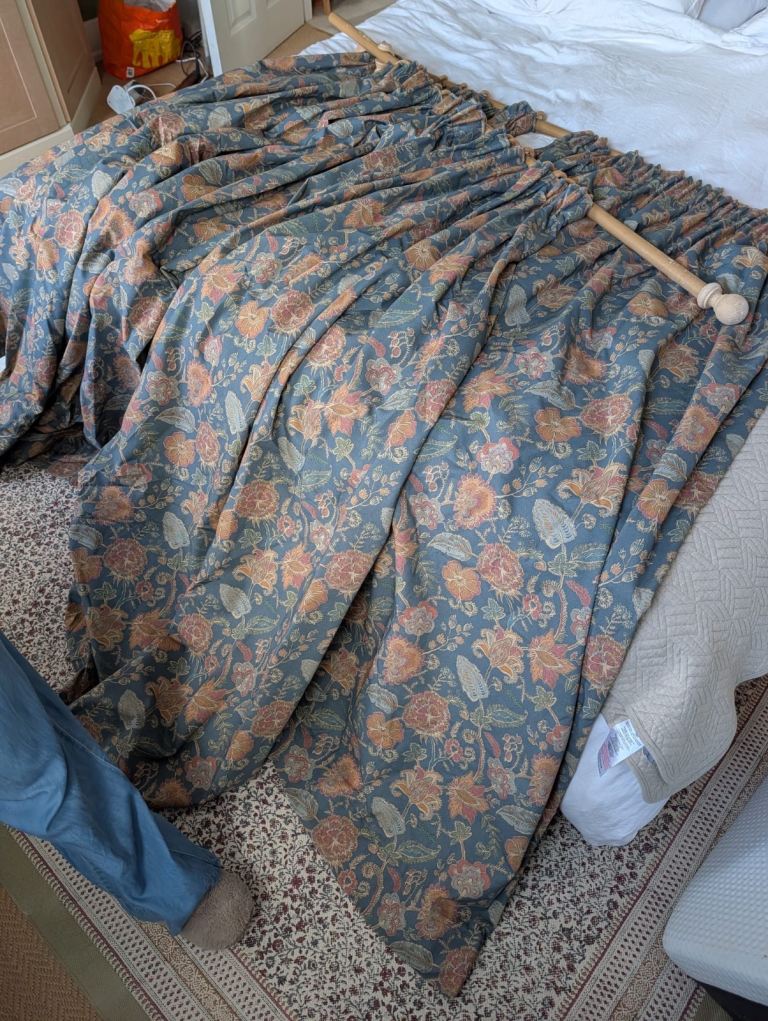 70cm long curtains. Lined & come with the poke. Smoke free household