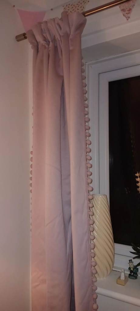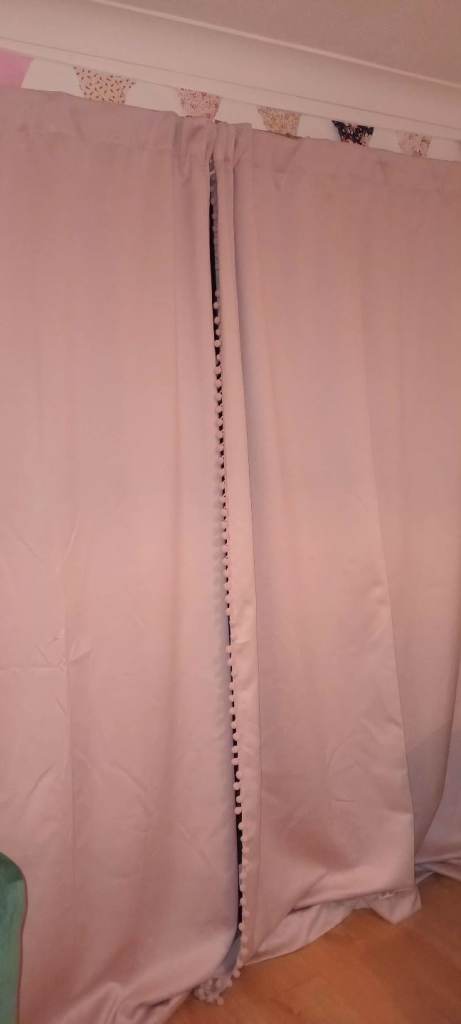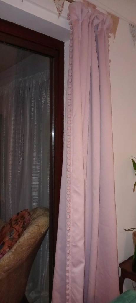 2 pairs lovely full length curtains, colour is dusky pink ( not the light pink shown in the online pic) only 1 year old change of colour scheme. Velvety feel. £35 for the 2 pairs 50 inches x 90 inches. Pet free, smoke free home