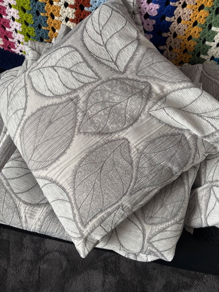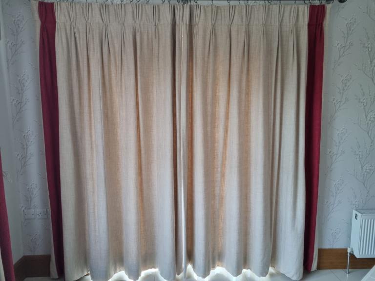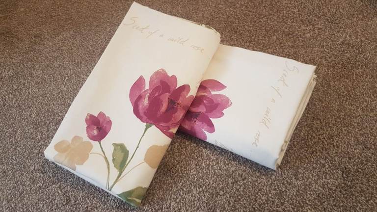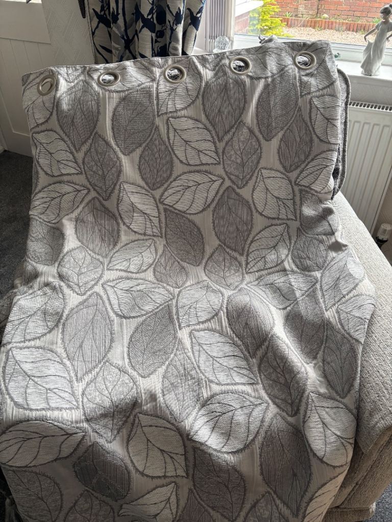 1 pair of curtains bought from Dunelm mill in January so as new wrong size bought. There are 3 cushions to match, the size of the curtains are 66 x 72
