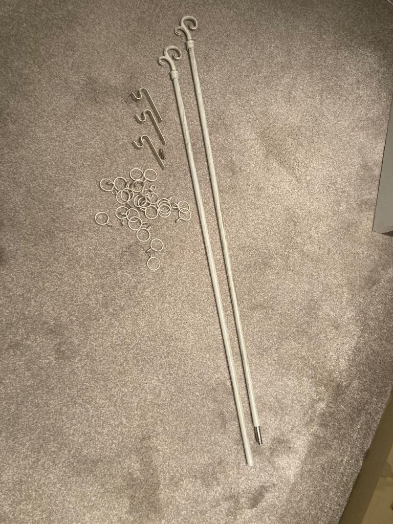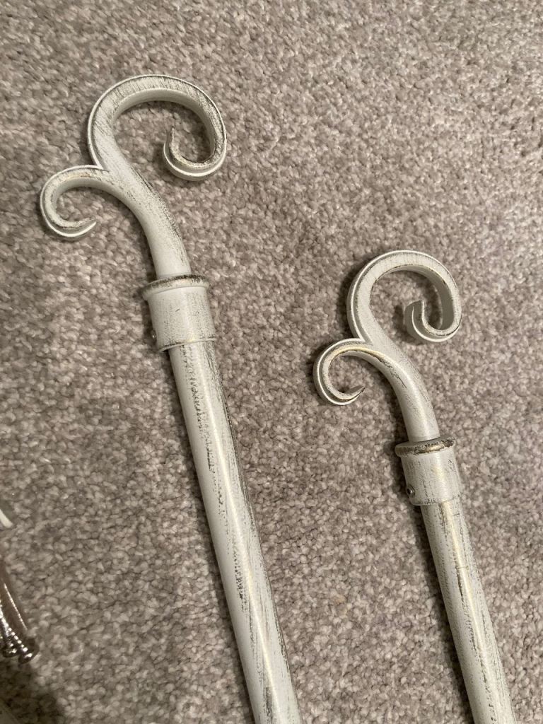 Distressed style curtain pole with 3 fixing brackets and 24 rings, slots together in the middle.