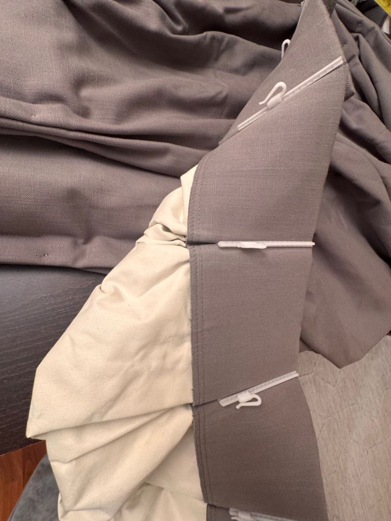 Dove grey triple pinch pleat curtains
