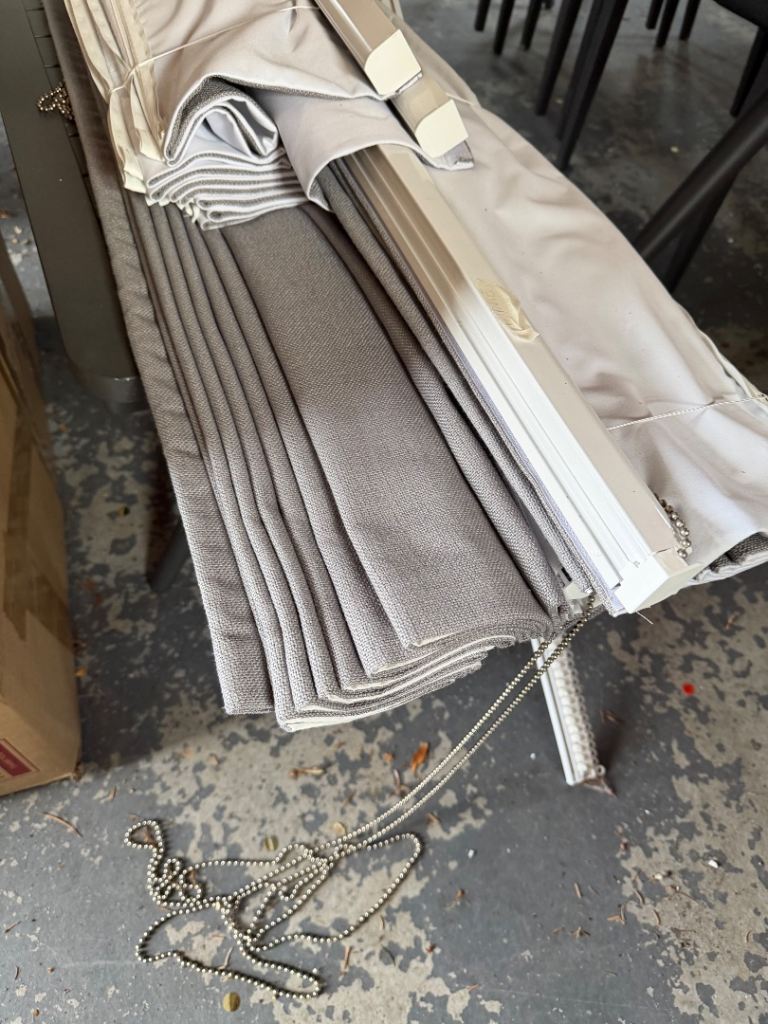 Blinds - 3 sets, grey, minimum 20 feet fabric