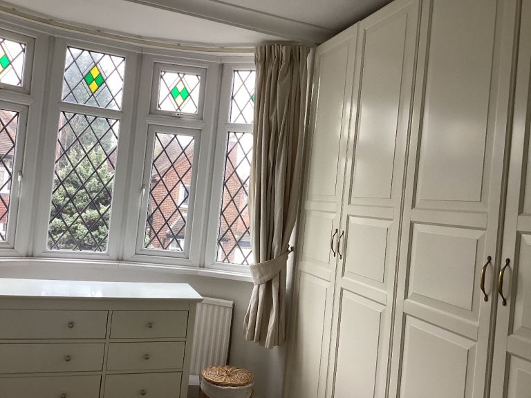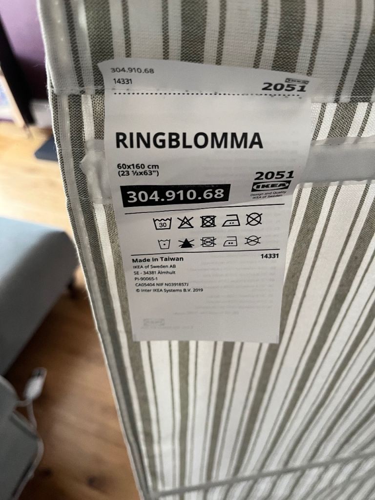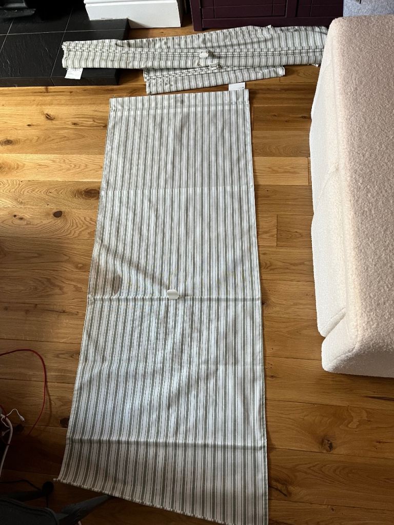 For sale: pair of magnetic Ikea blinds in green ticking stripe fabric. We believe this colour way is no longer available on the Ikea site.