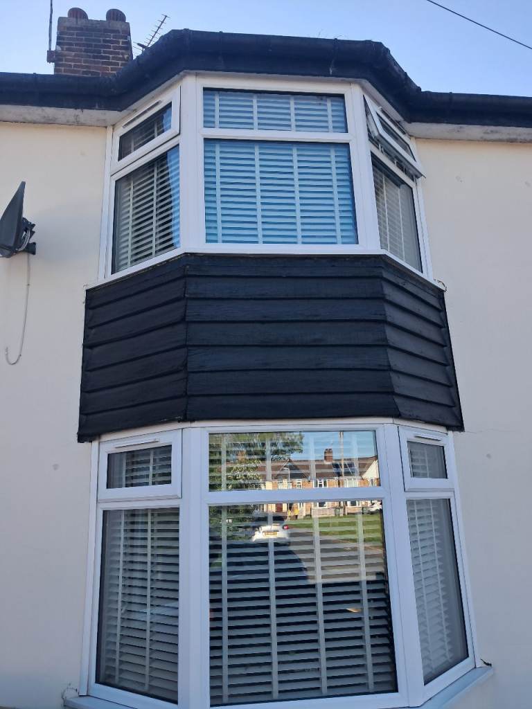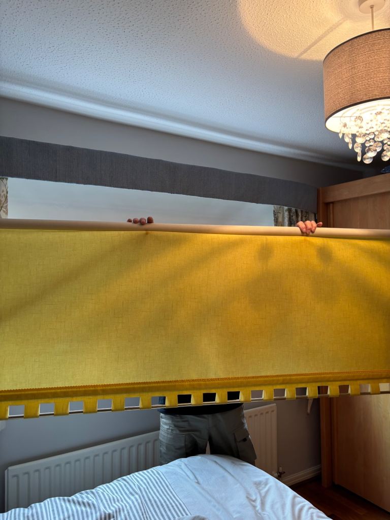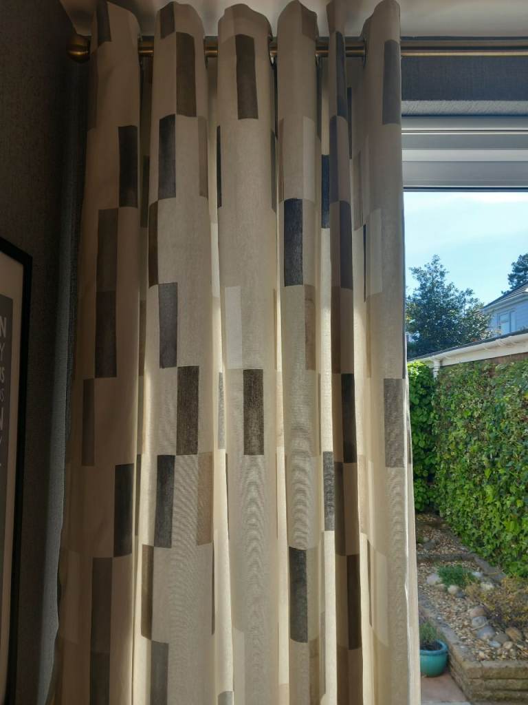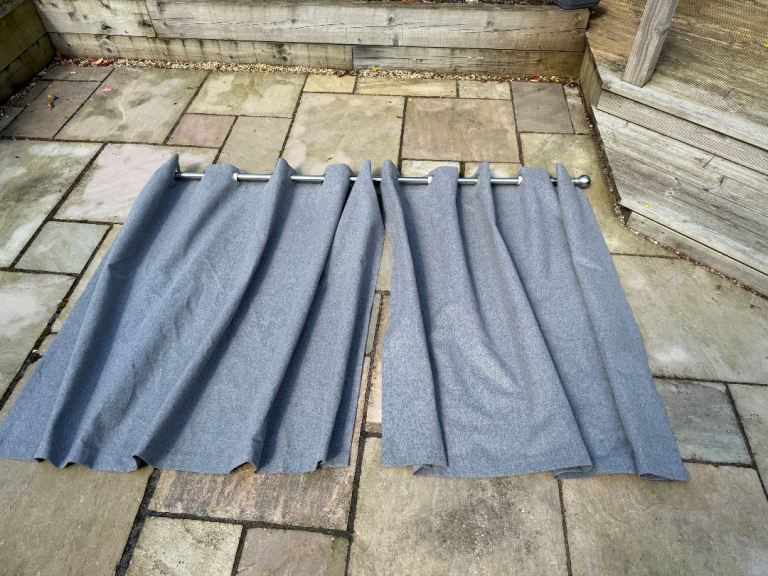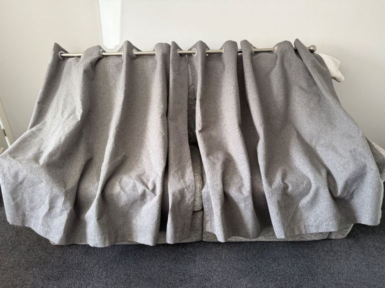 Grey curtains & curtain rail