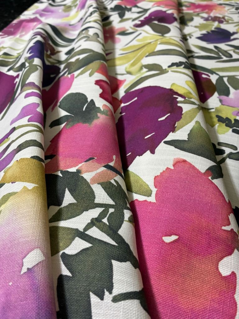 The John Lewis Bloom Fabric is a floral-themed fabric, perfect for soft furnishing projects.