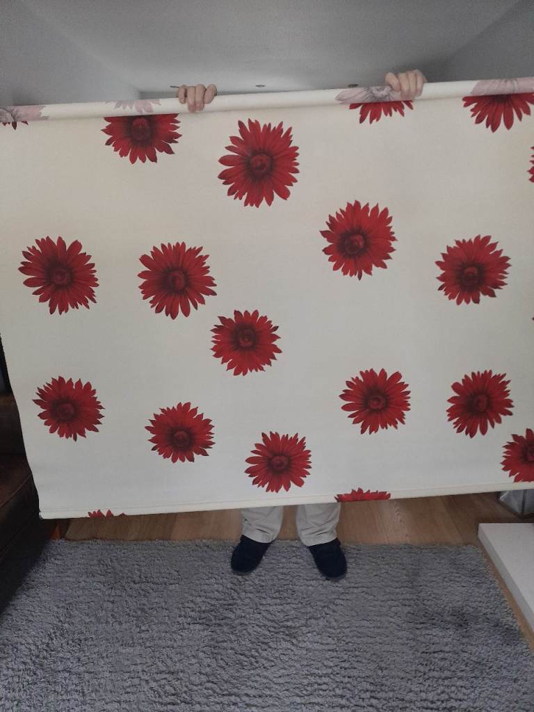 Lovely large Cream with Red Flowers roller blind 66 inches wide by 66 inches drop fabulous condition smoke free home. Only selling as redecorating kitchen. Collection only