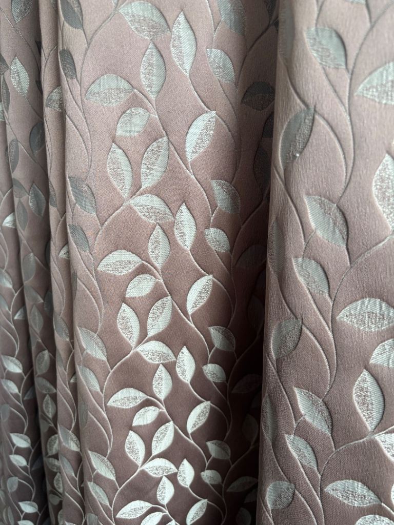 Colour - heather background with silvery/grey leaf pattern.