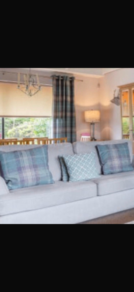 Also available 4 matching cushions in same modern plaid check pattern. Excellent condition.