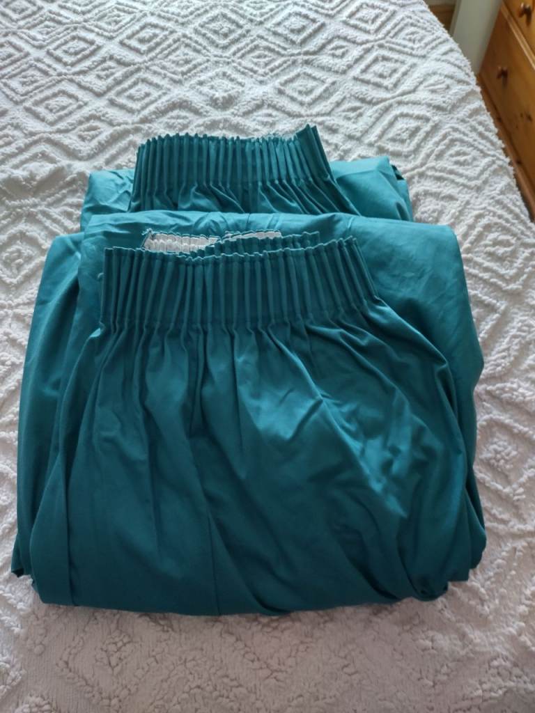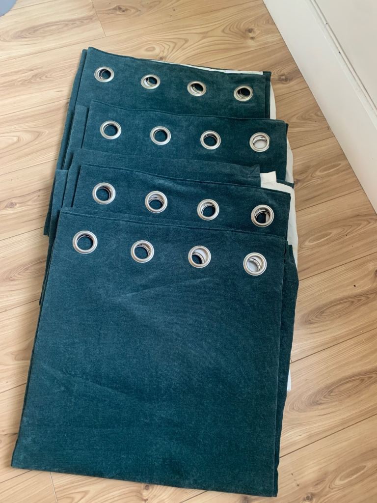Next Green/Teal Eyelet Curtains 229cm L x 117cm W - Pre-Owned (Two sets)