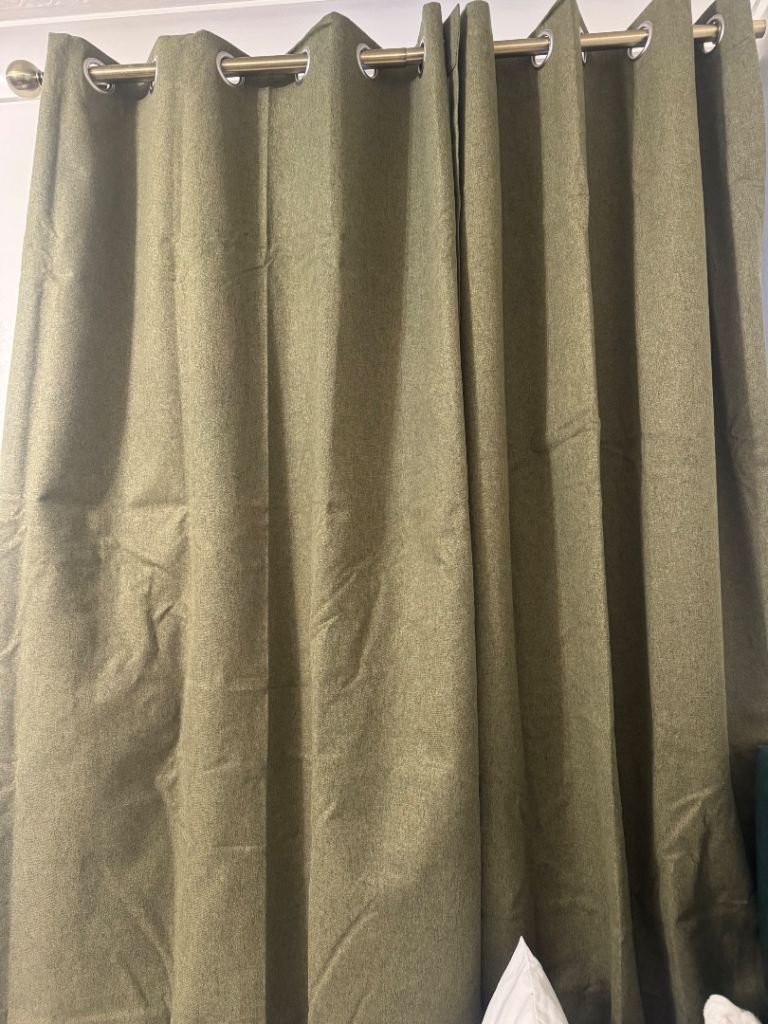 Two brand new Olive colour curtains. The reason of selling because it doesn’t suit the room
