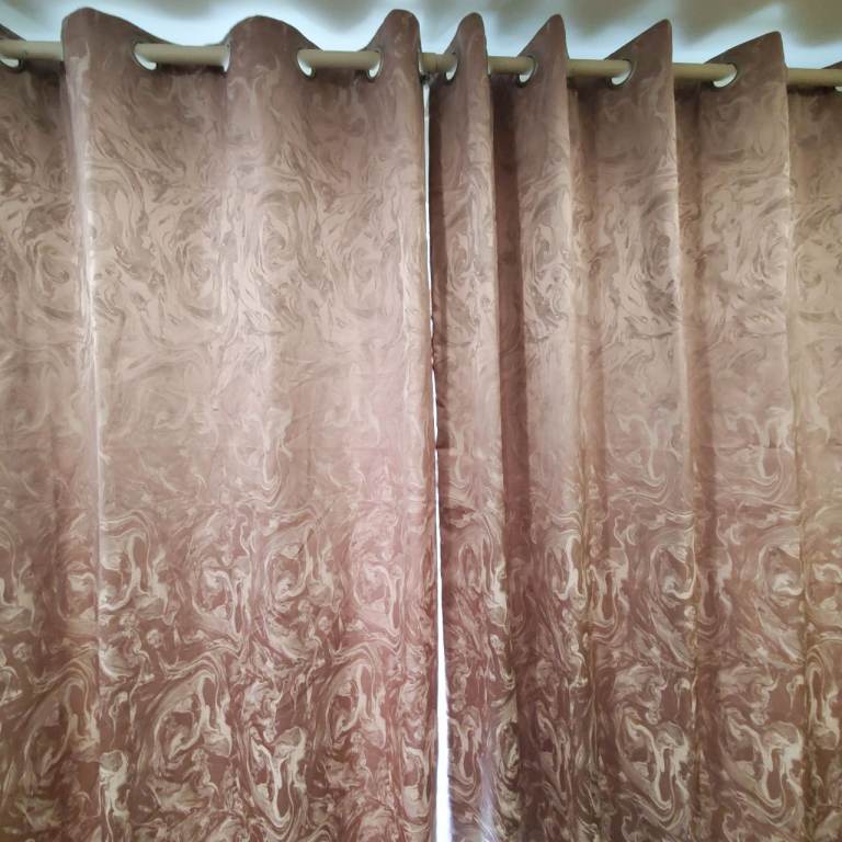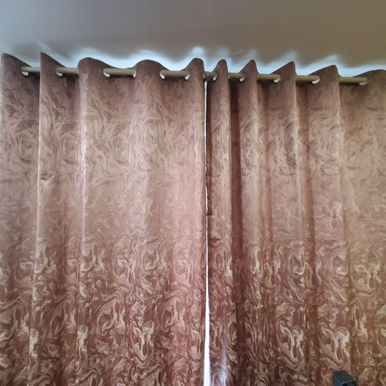 Pair of patterned Dusky Pink curtains with eyelets, in great condition.