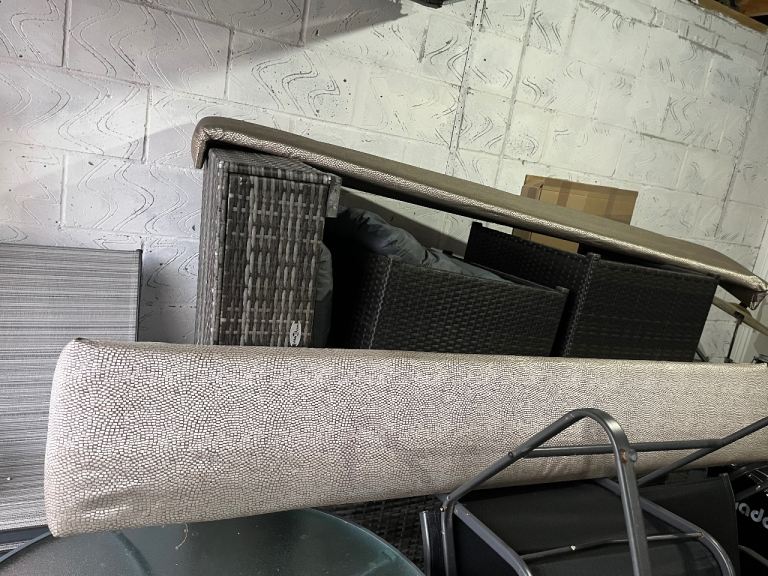 Pair of Laura Ashley custom made fully lined, double pleated curtains, light grey background with a cream and white leaf design. WHEN DRAWN/CLOSED: Drop 210cm, W 120cm per curtain. Sale due to house refurbishment. Buyer collects.