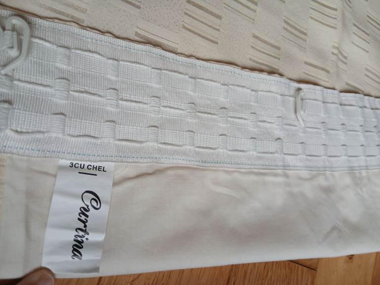 These beige pencil pleat curtains are in very good condition, cotton lined, no stains and from a non-smoking home. Size for each panel: