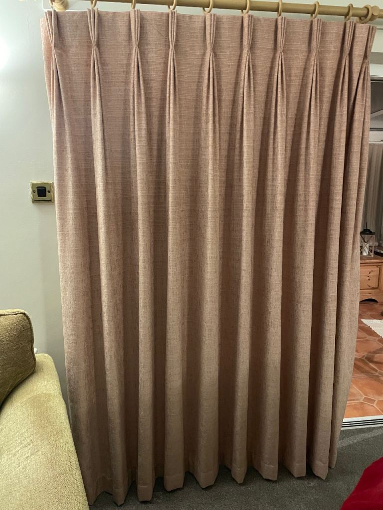 Drop 205cm x width at bottom 330cm, width at top ( pin tucks) 150cm. Each curtain.