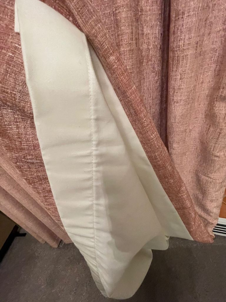 Heavy weight in a chenille fabric., fully lined. Pale pink in colour.