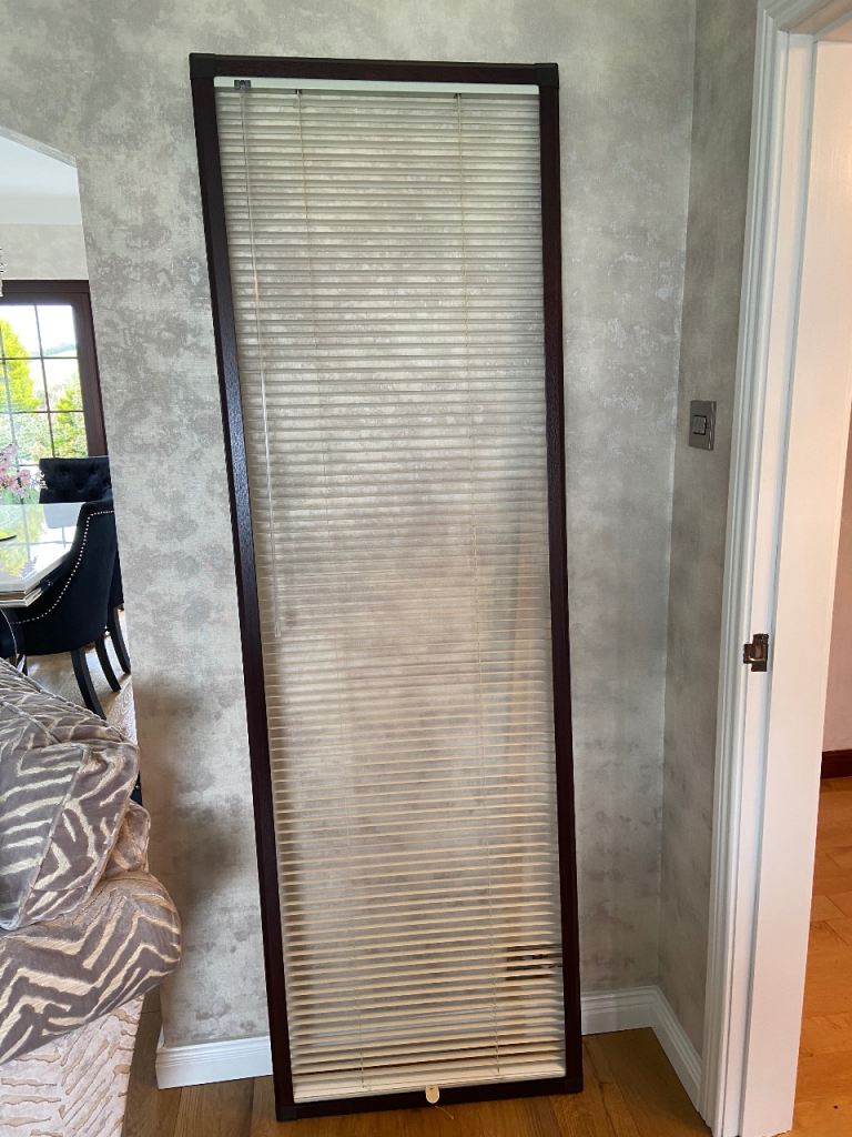 Professionally made Roman blind with blackout lining. Designer guild fabric any questions please ask width 140 cm drop 108cm