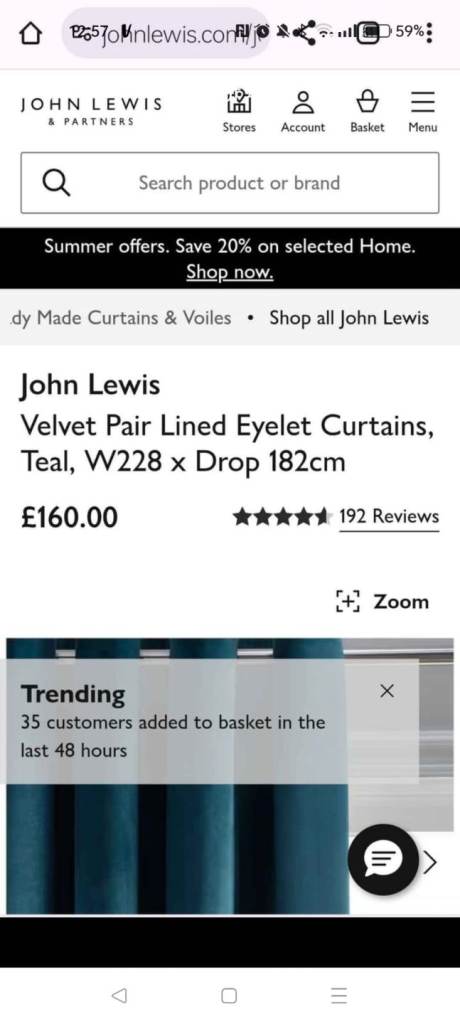 Single eyelet door curtain from Next. Colour beige check. Size 66” width x 84” drop. Excellent condition.