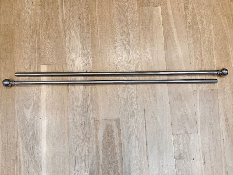 The pole is in 2 sections, joined in the middle so it can be shortened by cutting it. It’s reasonably new (Neo model from Poles Direct, to buy this new is £160) Perfect working order, only replacing as I have had blinds fitted instead of curtains.