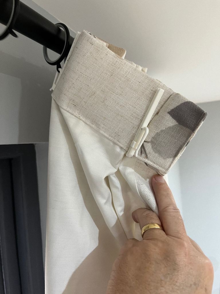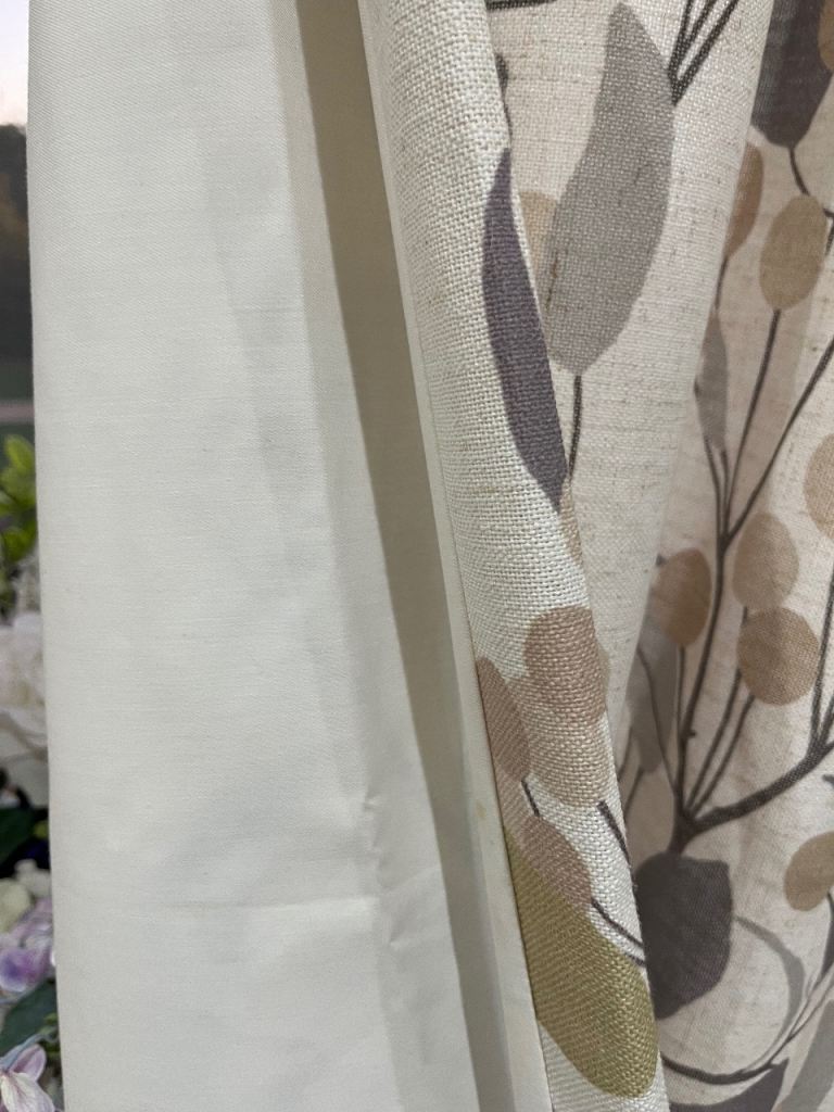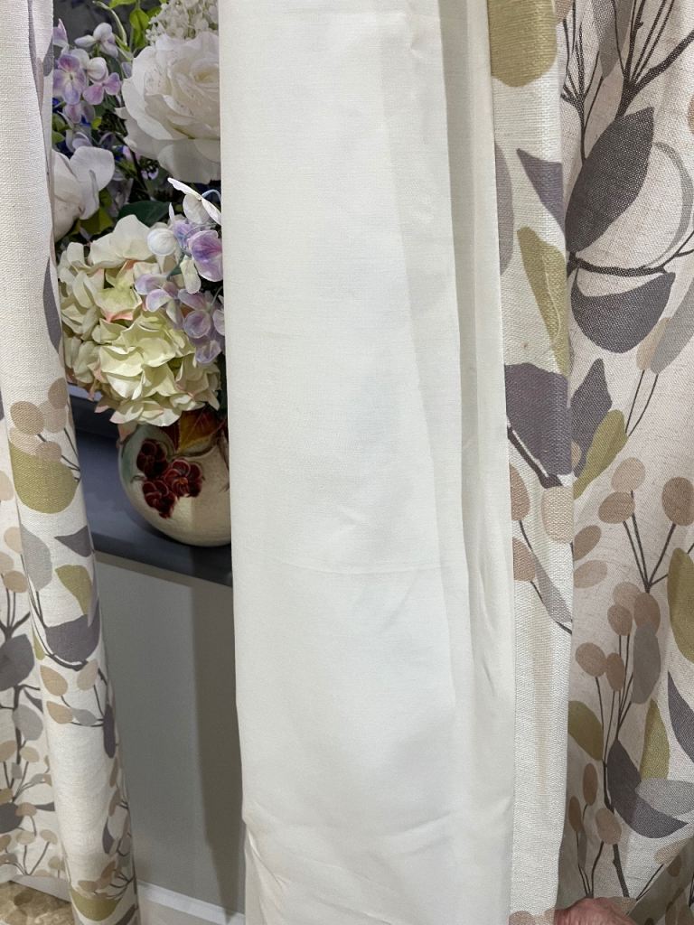 Also for sale is a matching pair or curtains 180cm width by 135cm drop double pinch pleat heading with black out lining. £45