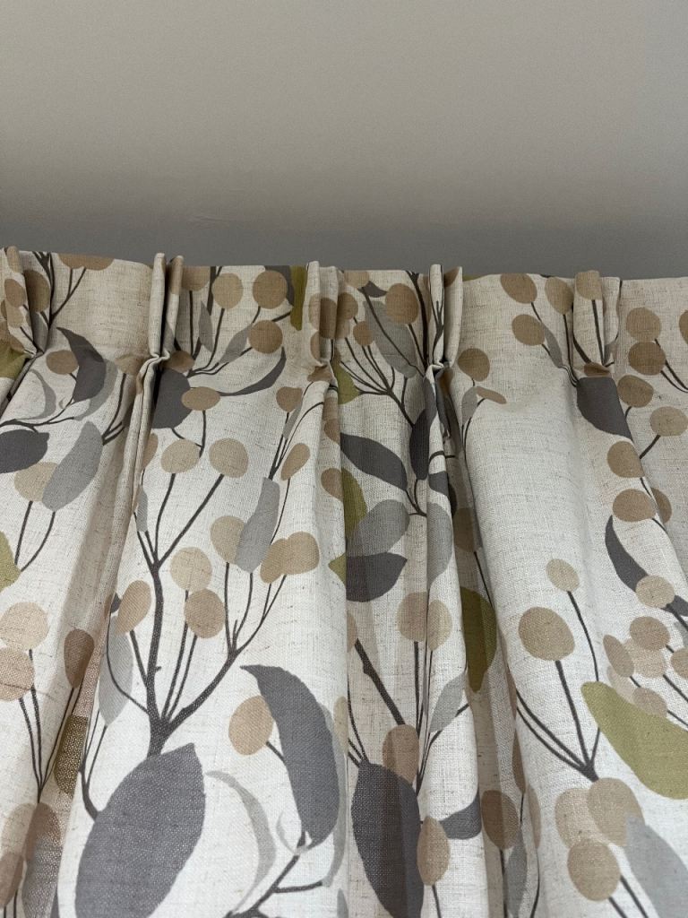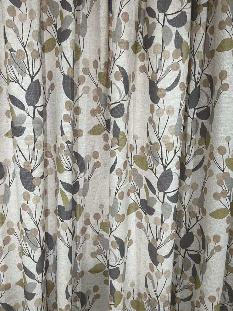 One pair of Beautiful bursting berry design curtains. 300cm width by 220cm drop double pinch pleat heading with light filtering linings. These curtains are clean and in good condition. £95