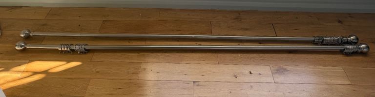 2 curtain poles 217 cms and 4 hold backs.