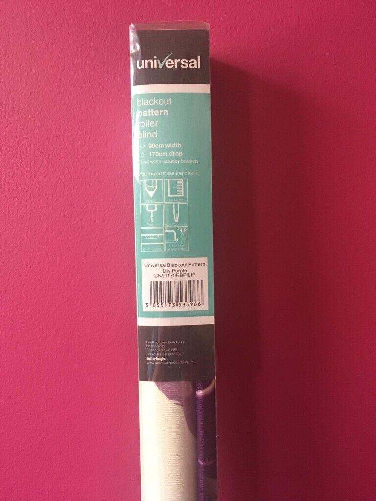 Brand New Universal blackout pattern roller blind, lily purple 90cm width 170cm drop. Can also be cut to size. Collection only unless in NG4 area then happy to deliver. Thanks