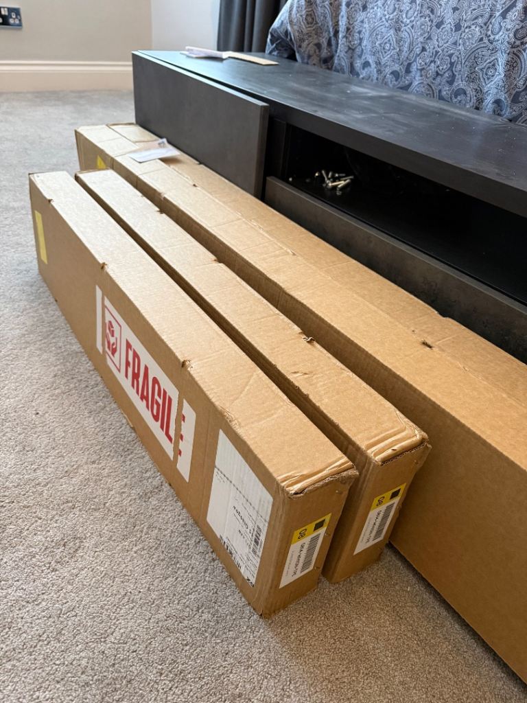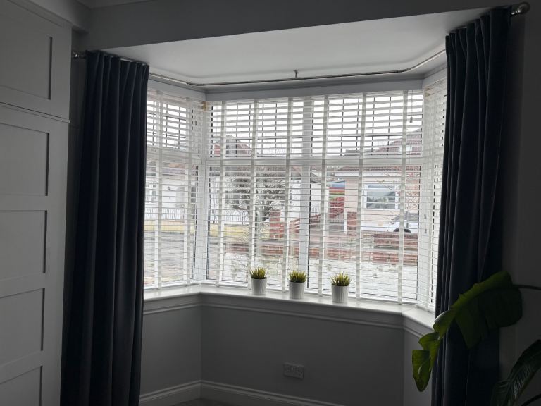 Ecowood deluxe supreme white satin Venetian blinds from 247 blinds. Brand new in boxes. Surplus to requirement. 5 in total. Half the original price