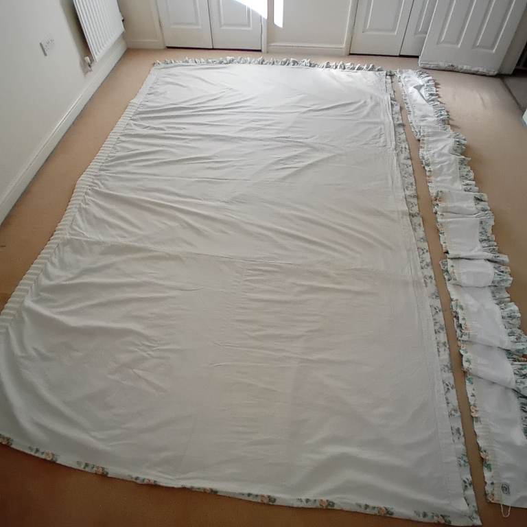Made for a large Victorian window by Laura Ashley, pencil pleat fully lined 100% cotton, with Pelmet and 2 reversible tie backs