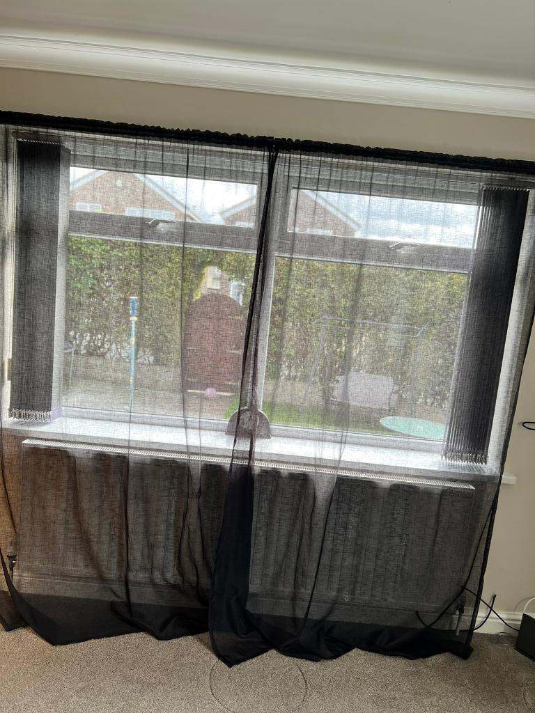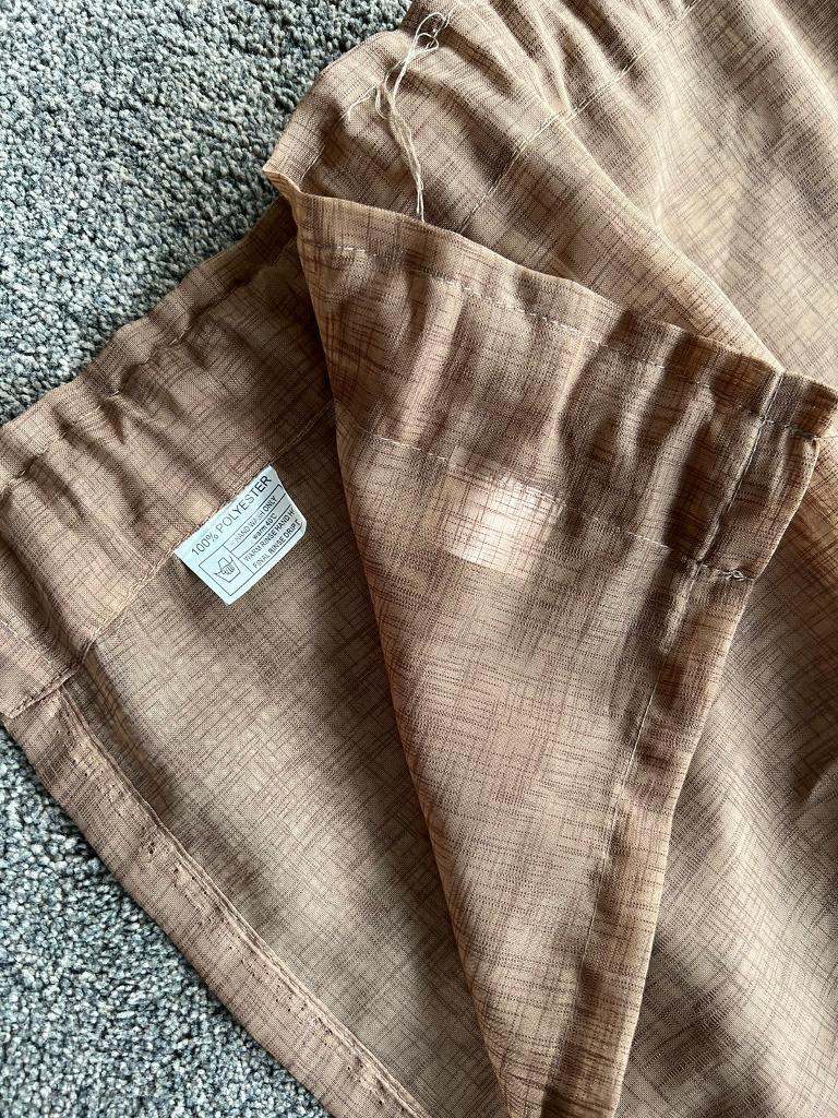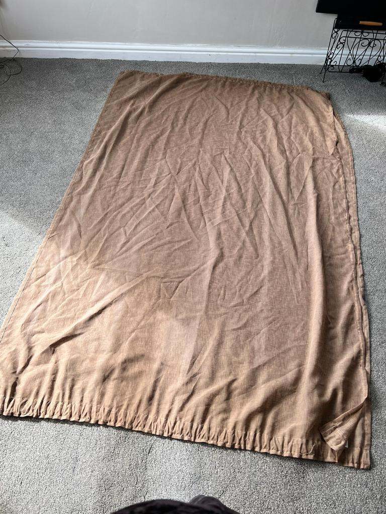Used good condition browny beige colour voile curtains. Very nice fabric.. Black is for demonstration that’s how they look on.
