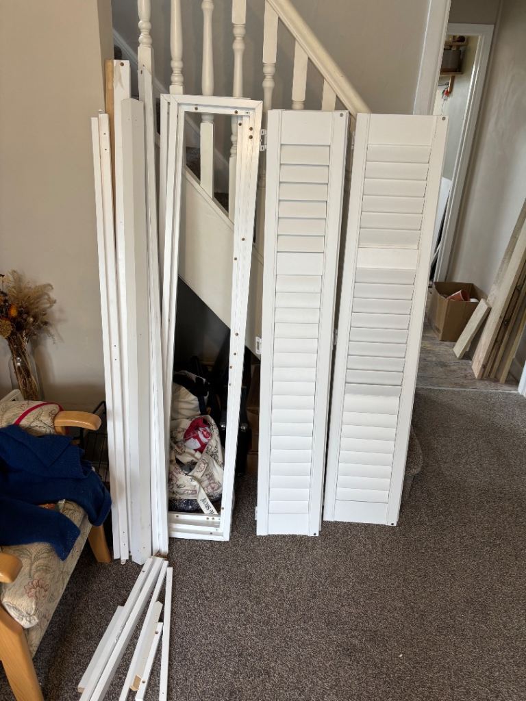 Frame has been taken apart so would need putting back together. Blinds themselves are still in tact in great condition.