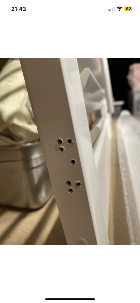 Drill holes in door still work fine, choose which holes sit well and drill into your new frame.