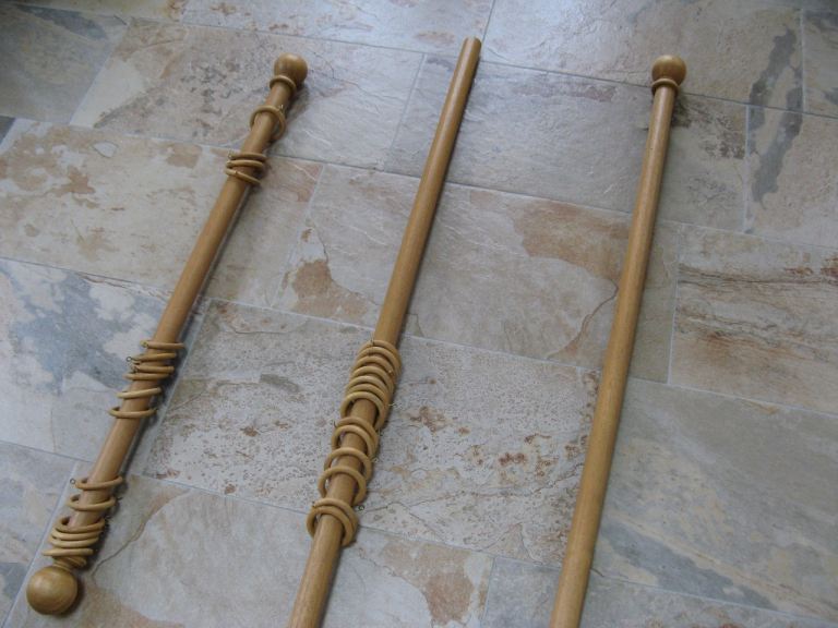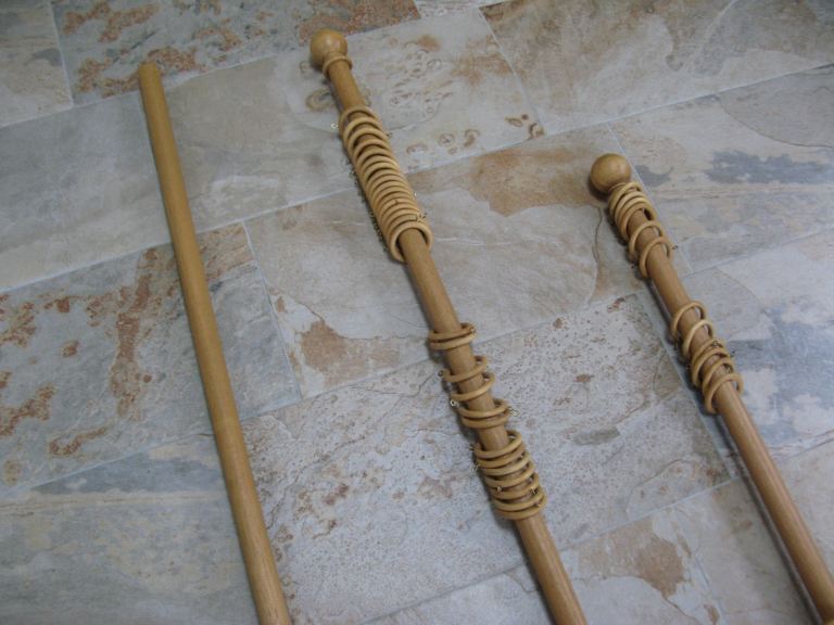 2 good quality solid wood curtain poles from John Lewis, compete with all fittings and curtain rings. Both 35mm thick.