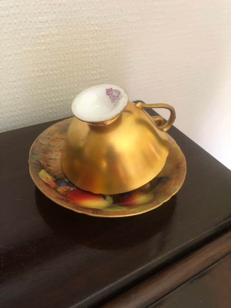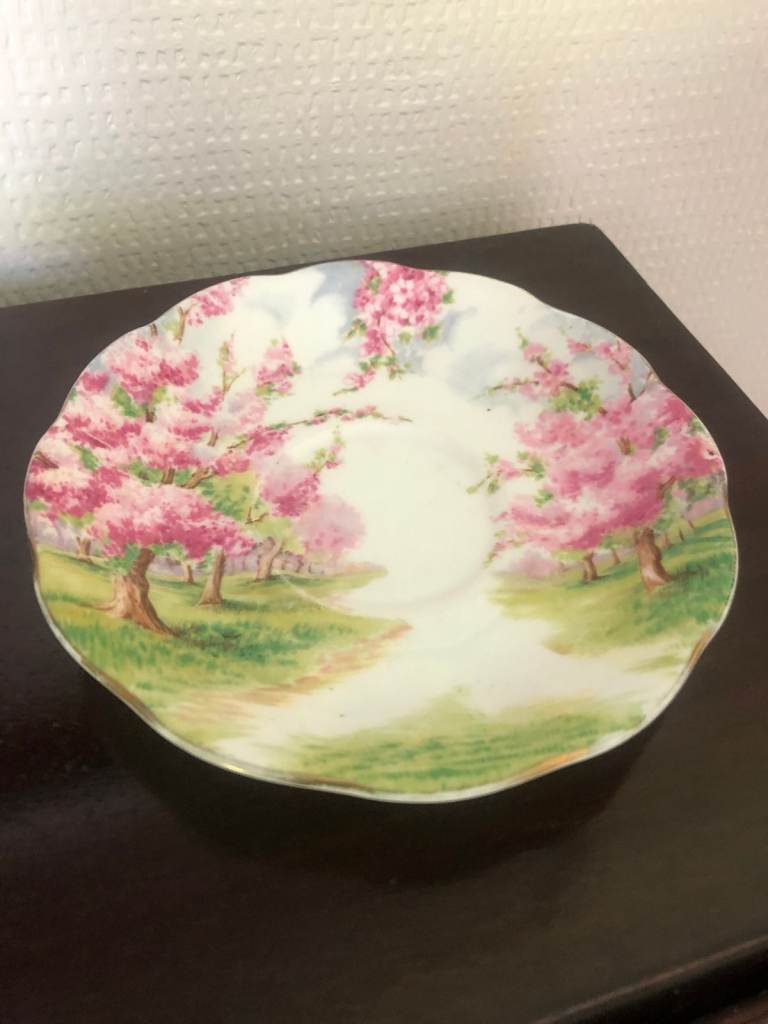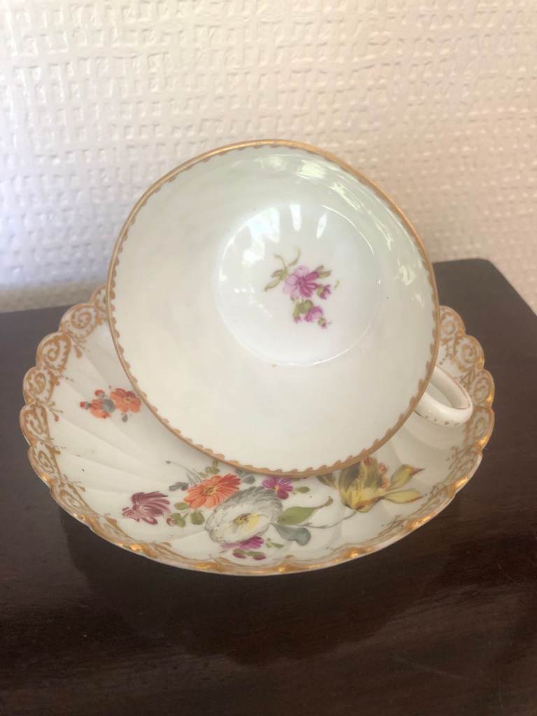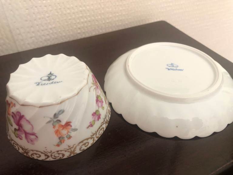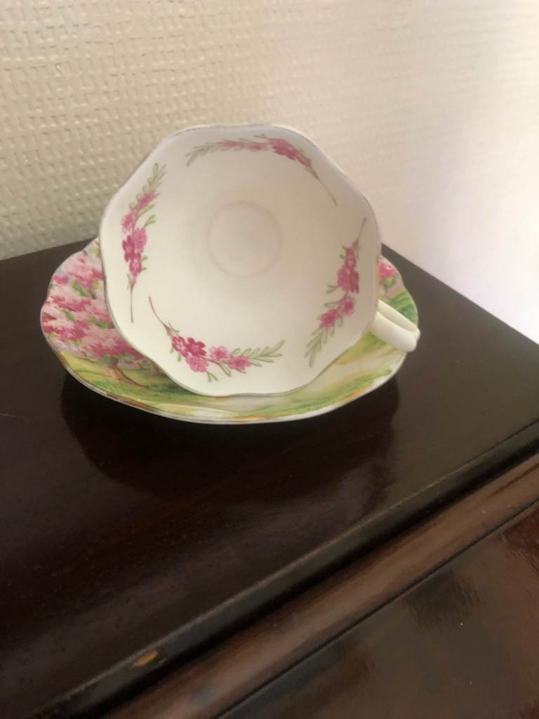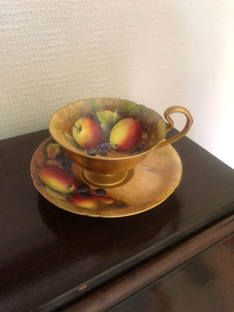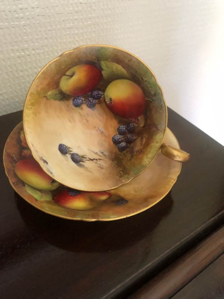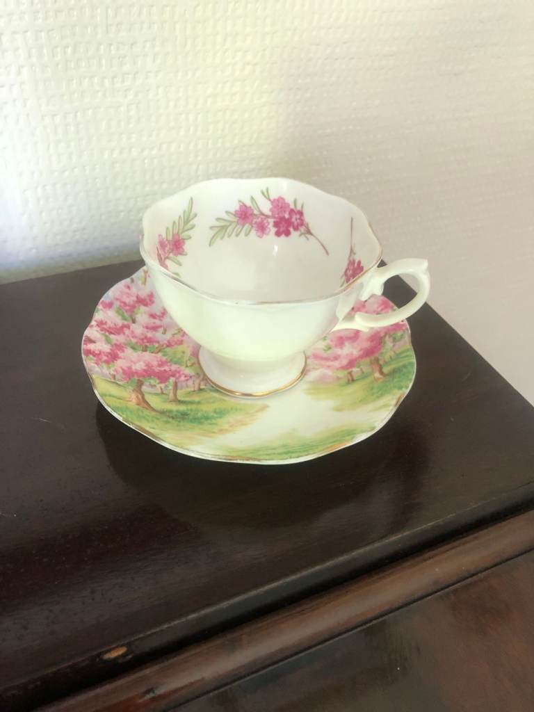 1 x Royal Albert "Blossom Time" cup and saucer. 1 x Royal Worcester. 1 x Dresden.
