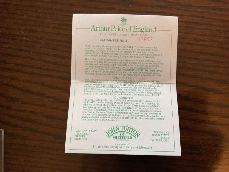 Arthur Price Dubarry 123 piece Cutlery Set. Twelve place settings. Guarantee Card JT42897. Each piece marked with Arthur Price of England and 3 stars. Excellent condition. Rarely used. Many items still in protective sleeves. Priced competitively to sell.