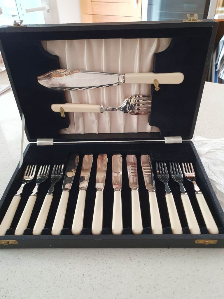 Tea Set includes 6 cups, 6 saucers, 6 side plates, 1 milk jug, 1 sugar bowl, and 1 cake plate.