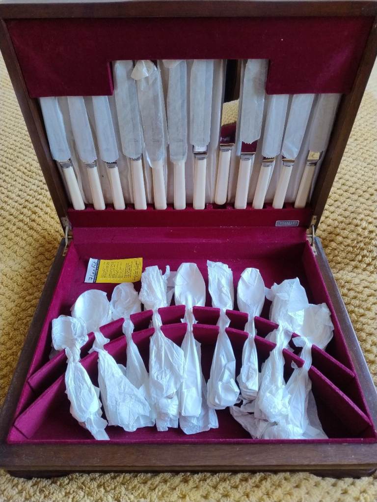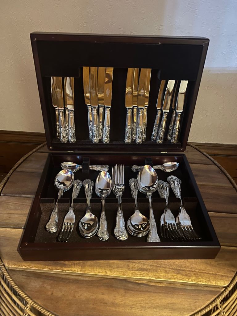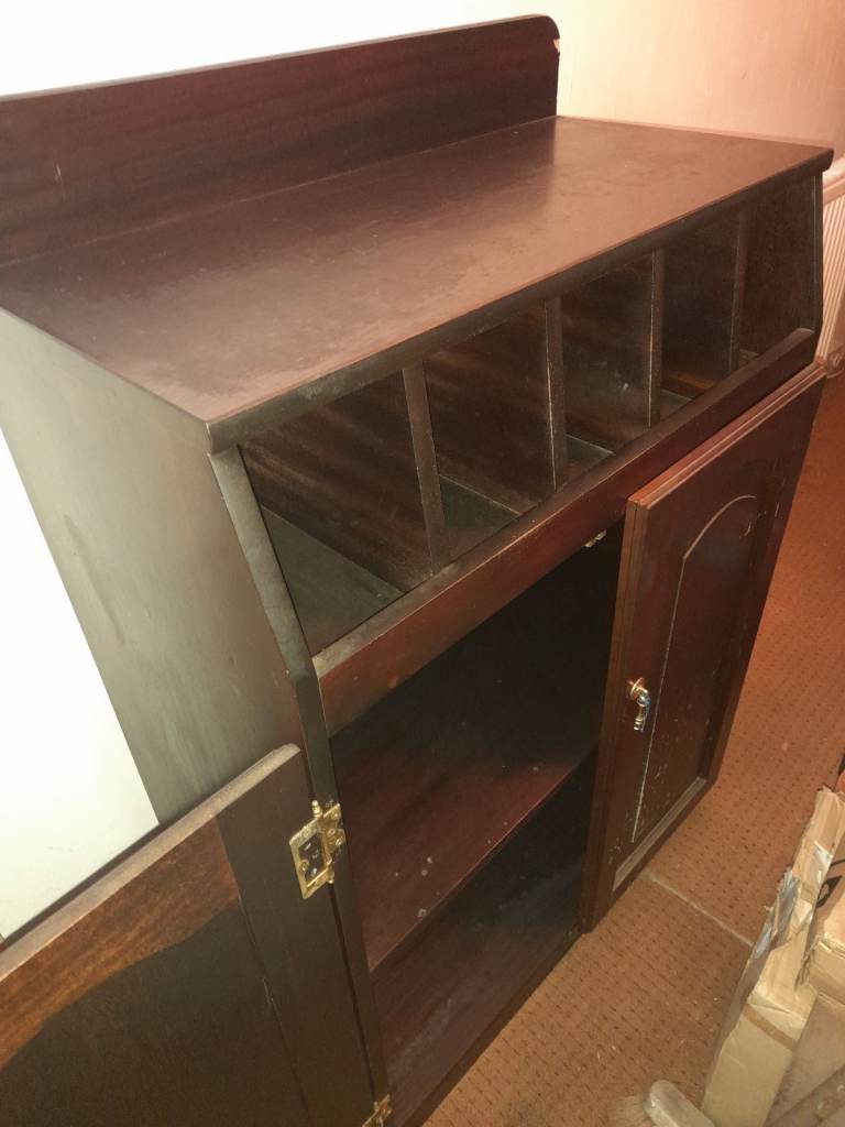 This great looking item Consists of Several parts. The top surface area for Condiments or naphins. The second rack has five individual sections to store and display cutlery. The utility below where are shelves for storage.